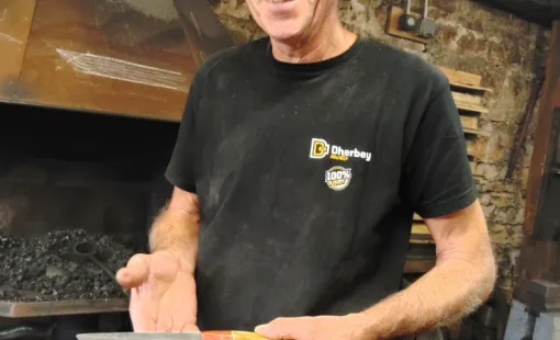 Pascal est venu passer une journée à la forge pour réaliser son couteau de cuisine. Dans le vacarme discret des marteaux…