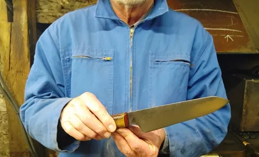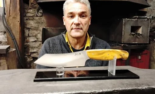 C’était au tour de Franck de se lancer dans la création de son couteau. Installé à Vielverge, au sein de l'atelier renommé "O Feu Forgé", Franck a choisi de relever le défi de la…