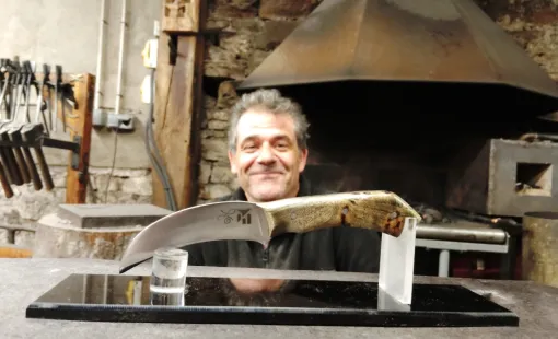 Guillaume est venu pour ça.Forger son couteau de cuisine…