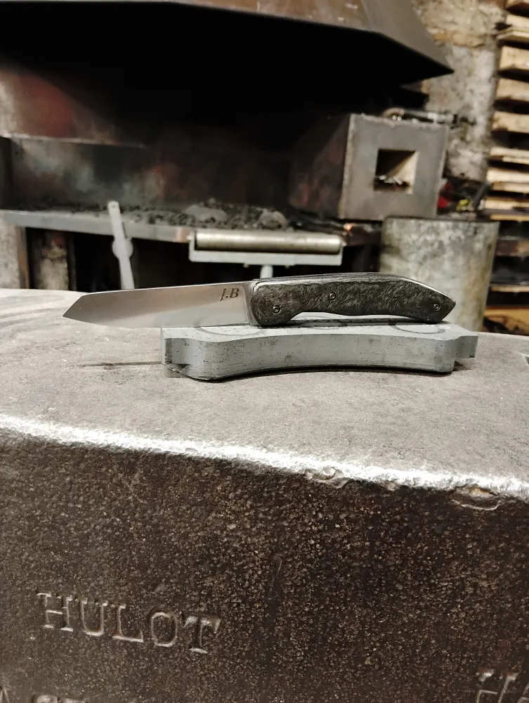 Chez O Feu Forgé, situé à Vielverge, j'ai eu récemment eu le plaisir d'accueillir Baptiste, un ancien mécanicien de Formule 1, pour un projet des plus originaux. Passionné par l'artisanat et doté d'une grande habileté manuelle, Baptiste a souhaité créer un couteau pliant unique, avec un manche en plaquette de frein en carbone provenant directement d'une F1. Ce projet, à la fois ambitieux et créatif, a été réalisé dans une ambiance conviviale, pleine d'humour et de joie de vivre.