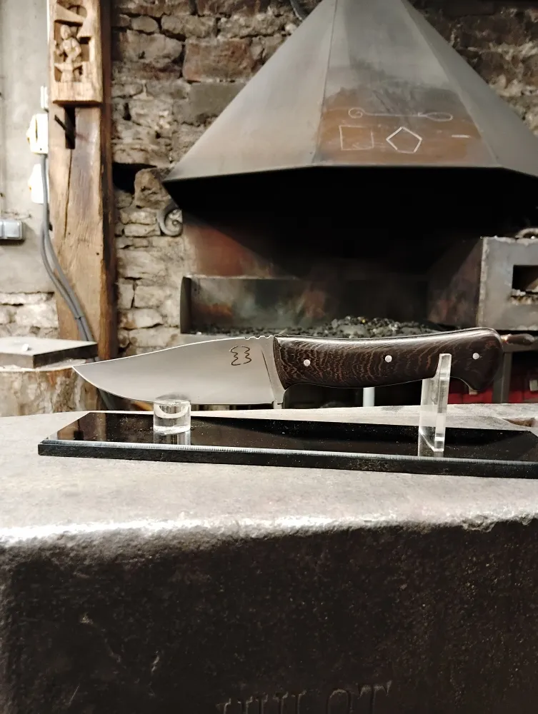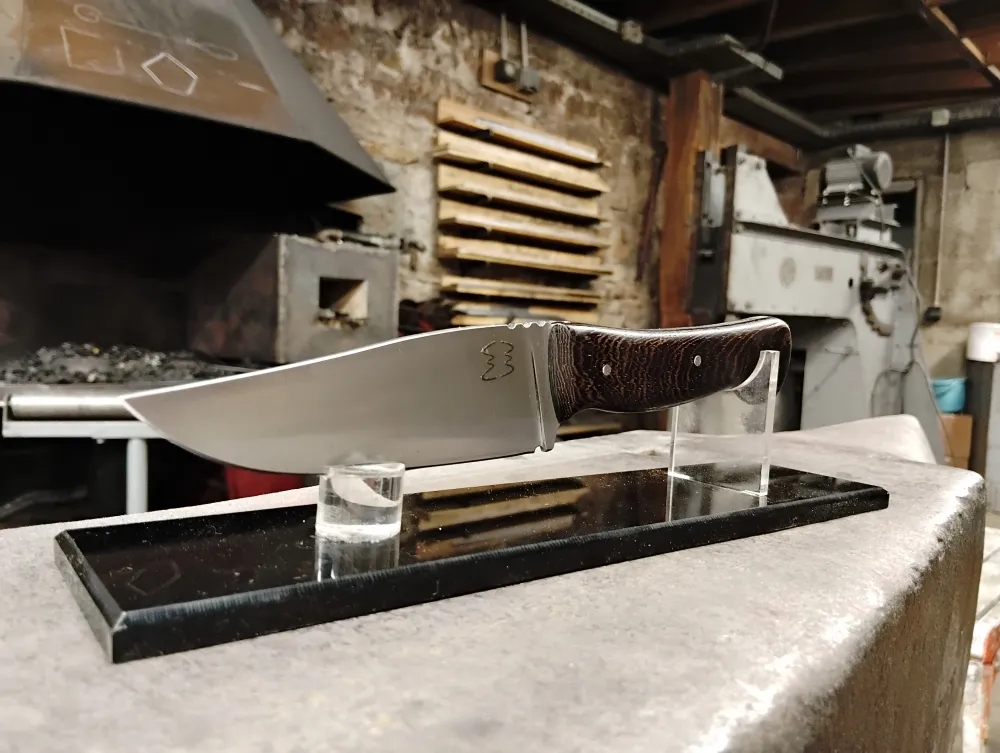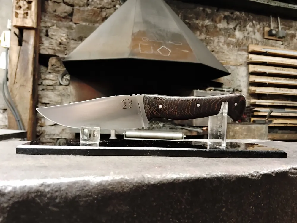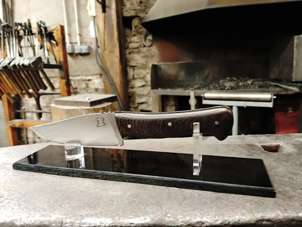 O Feu Forgé, situé à Vielverge, est reconnu pour son expertise en coutellerie et sa passion pour la création artisanale. Récemment, Christophe, l'un de nos artisans talentueux, a conçu un couteau utilitaire en une seule journée. Ce couteau est une véritable démonstration de savoir-faire : simple, rustique et efficace. Sa lame en acier carbone assure un tranchant exceptionnel et un mordant incomparable, tandis que le manche en IPE flammé confère caractère et solidité. Ce couteau est conçu pour être un compagnon de confiance, fait pour servir au quotidien.