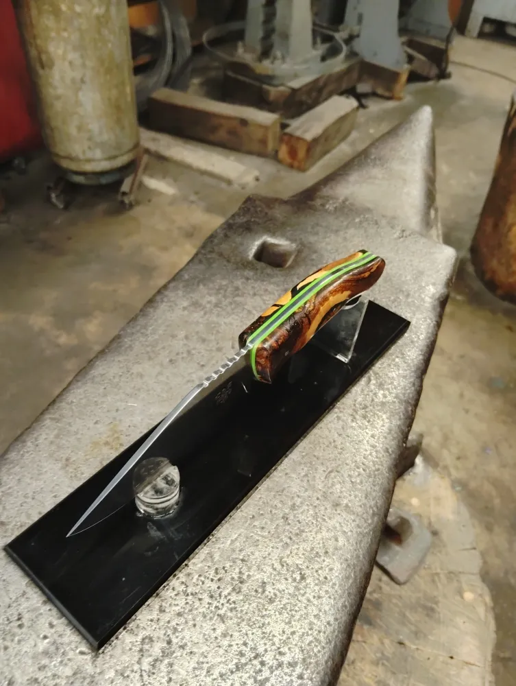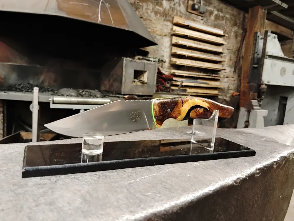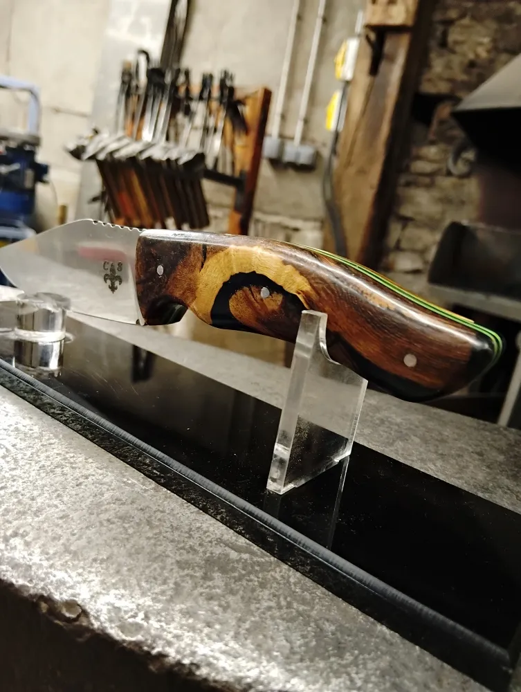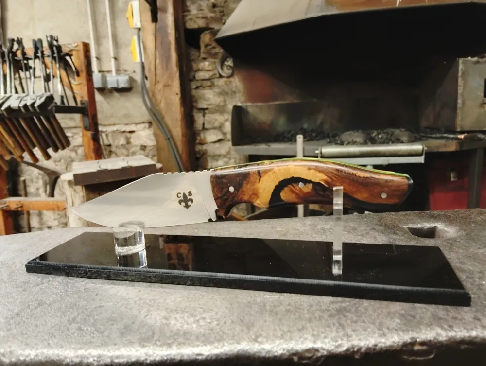 Christopher, un homme toujours pressé, a décidé de s'arrêter un instant pour réaliser un rêve : créer son propre couteau. C'est à l'atelier "O Feu Forgé", situé à Vielverge, qu'il a trouvé l'opportunité de concrétiser ce projet. Avec une vision claire en tête, il s'est lancé dans cette aventure créative. La feuille blanche n'a pas été un obstacle pour lui. Son dessin a pris forme naturellement, les lignes se sont harmonisées rapidement, et après quelques ajustements, le projet était prêt à démarrer.