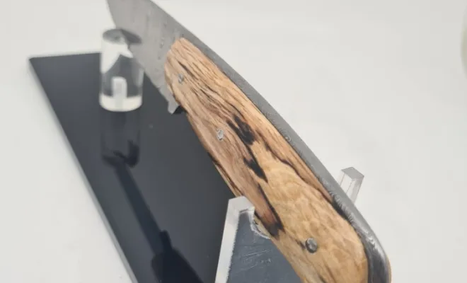Les motifs du Damasteel associés au bois stabilisé en font une pièce à la fois fonctionnelle et agréable à regarder, faite pour être utilisée plutôt que rangée dans un tiroir.
