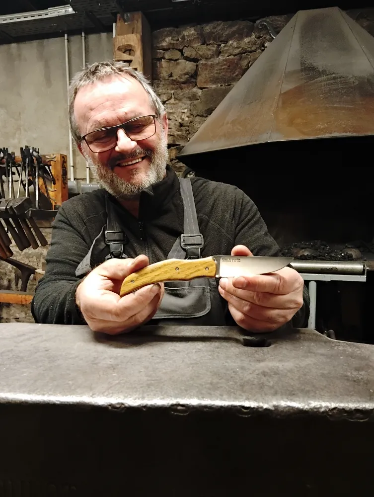 O Feu Forgé, situé à Vielverge, est bien plus qu'un simple atelier de coutellerie. C'est un lieu où la passion pour l' acier se transforme en œuvres d'art uniques. Récemment, Étienne, un collectionneur passionné, a franchi le pas pour découvrir l'envers du décor. Habitué à admirer les couteaux, il a décidé de passer de l'autre côté du miroir pour comprendre ce qui se cache derrière une pièce finie. Pour cela, Étienne a passé deux jours dans mon atelier pour fabriquer son propre modèle Victorus.