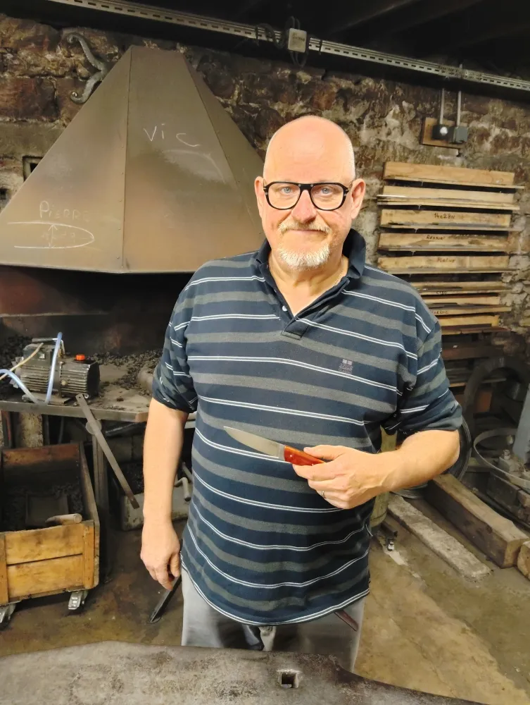 Une belle journée passée à l’atelier Ô Feu Forgé, à Vielverge, pour Jean-Christophe, venu découvrir la coutellerie artisanale à travers la méthode stock removal.
