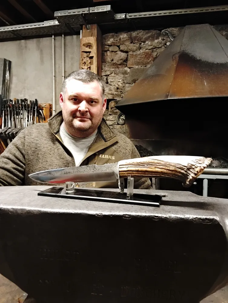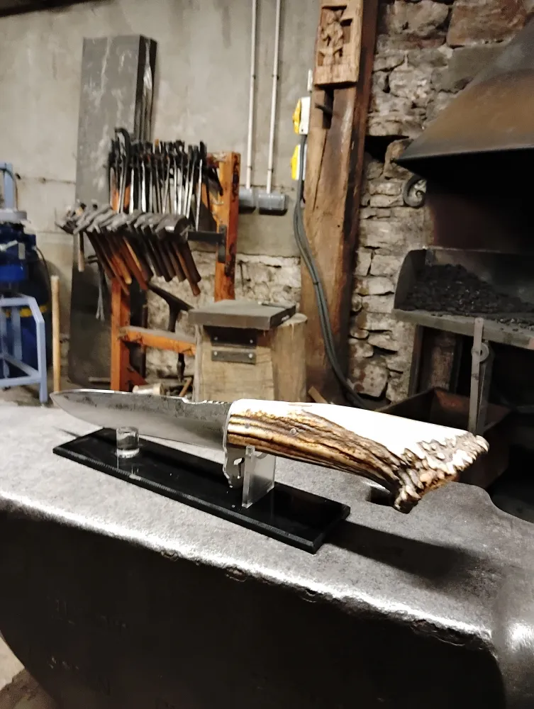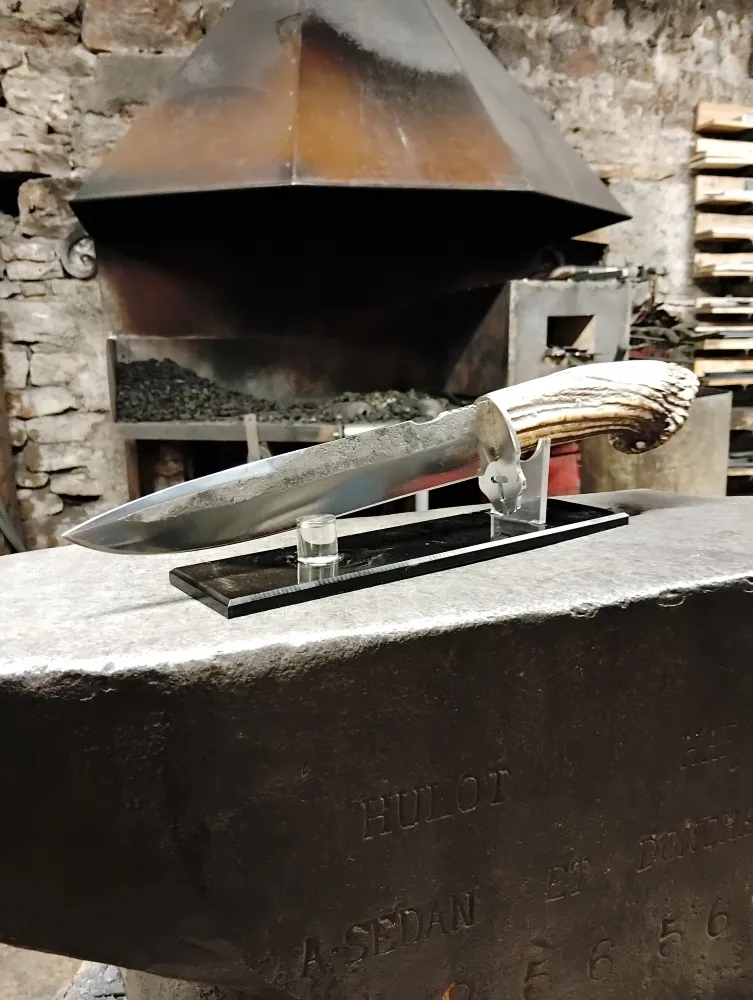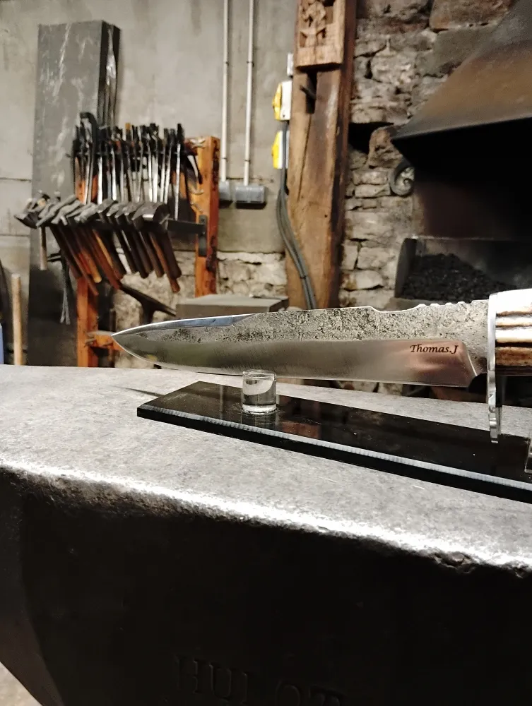O Feu Forgé, situé à Vielverge, est bien plus qu'une simple forge. C'est un lieu où les rêves prennent forme un accompagnement. Récemment, un passionné de chasse, Thomas, a réalisé son rêve de longue date : forger son propre couteau de chasse. Avec le soutien de ses amis et de sa famille, Thomas s'est lancé dans cette aventure unique, utilisant un bois de cervidé qu'il avait soigneusement ramassé pour le manche. La lame de 25 cm, forgée avec passion, témoigne de son engagement et de son dévouement. La garde, conçue avec une imagination débordante, offre un rendu exceptionnel.