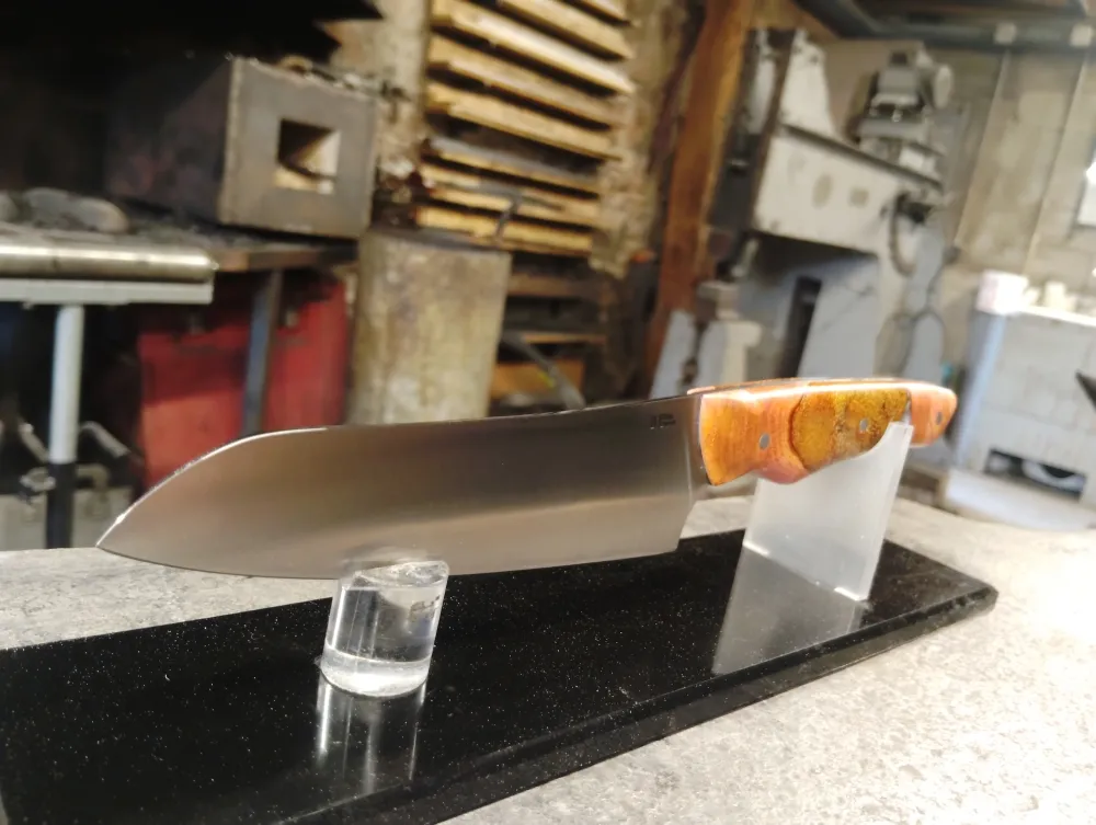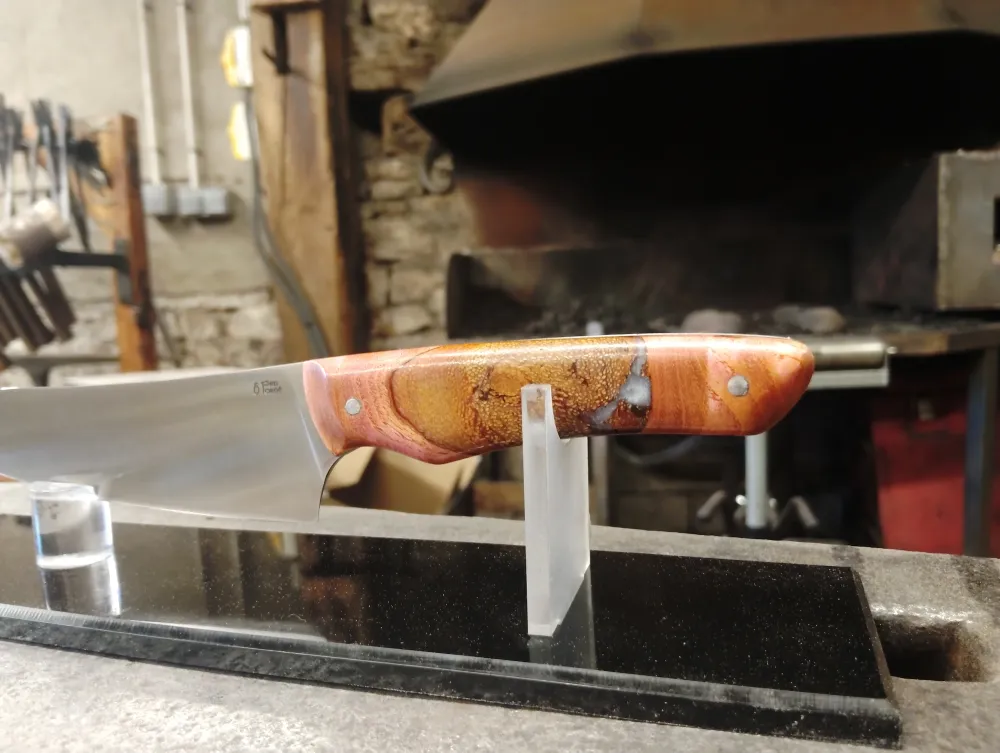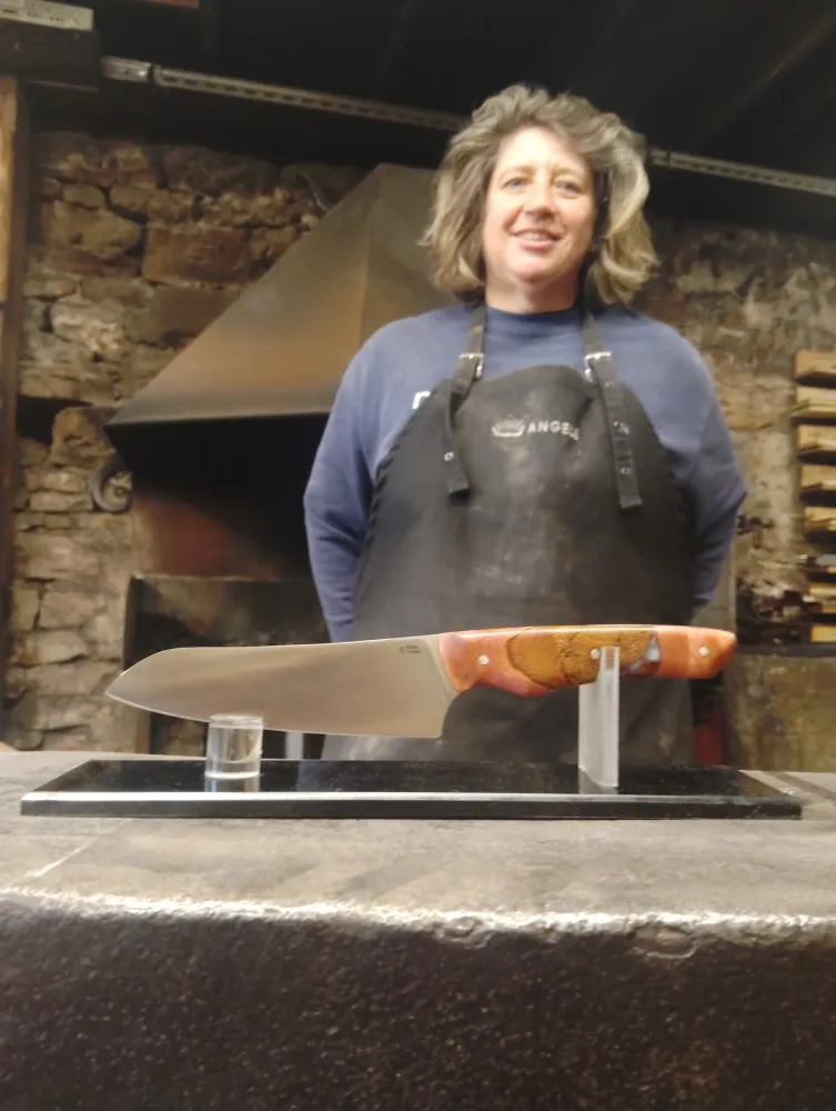 La voilà à l’atelier, avec une idée en tête : créer son propre couteau de cuisine.