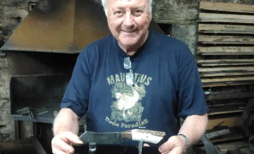 Il était déjà venu à Vielverge (Côte-d’Or) forger un couteau pliant. Cette fois, il revient…