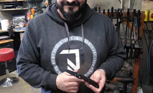 Couteau pliant forgé, stage de forge coutellerie, artisan forgeron à Vielverge proche de Langres